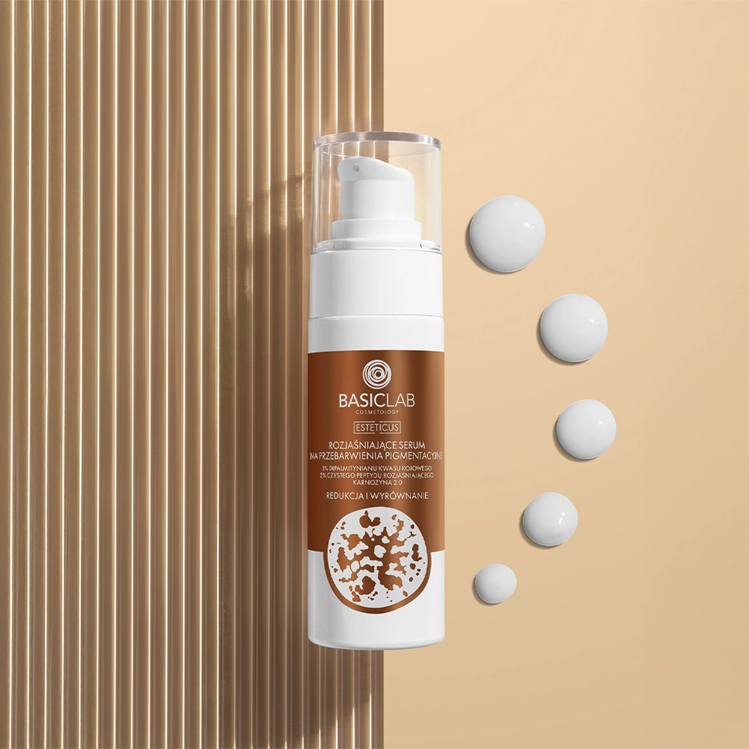 Rozjaśniające serum na przebarwienia pigmentacyjne, 5% dipalmitynianu kwasu kojowego, 2% czystego peptydu rozjaśniającego, Karnozyna 2.0, Redukcja i Wyrównanie