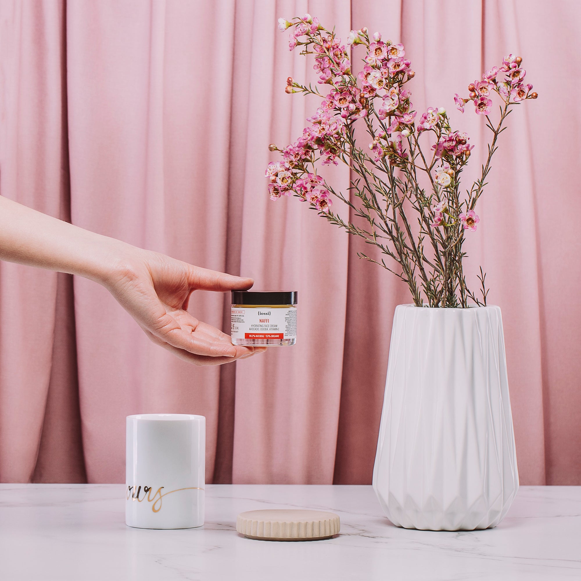 Nafii – delikatny w konsystencji i skuteczny w działaniu naturalny krem do twarzy. Nawilża i odżywia skórę. Działa uelastyczniająco, dodatkowo wyrównując koloryt cery. Pielęgnuje podrażnioną skórę i przyspiesza regenerację naskórka. Nie pozostawia tłustego filmu, dzięki czemu świetnie nadaje się pod makijaż.