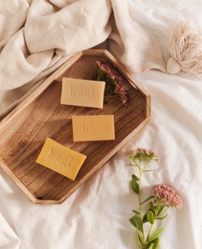 Olej konopny to główny składnik mydła, który koi wymagającą skórę. Dzięki zawartości kwasów omega 3 i 6 wzmacnia oraz pielęgnuje naturalną tarczę ochronną skóry czyli płaszcz hydro-lipidowy. Dodatkowo, zapach mydła tworzą aromatyczne, ziołowe olejki eteryczne z poczuli, sosny, geranium i z drzewa herbacianego przełamane kwietnym olejkiem z drzewa różanego oraz goździka. Psssst…nasze mydełko ma w sobie drobinki gałki muszkatołowej, aby podczas mycia delikatnie peelingować skórę.