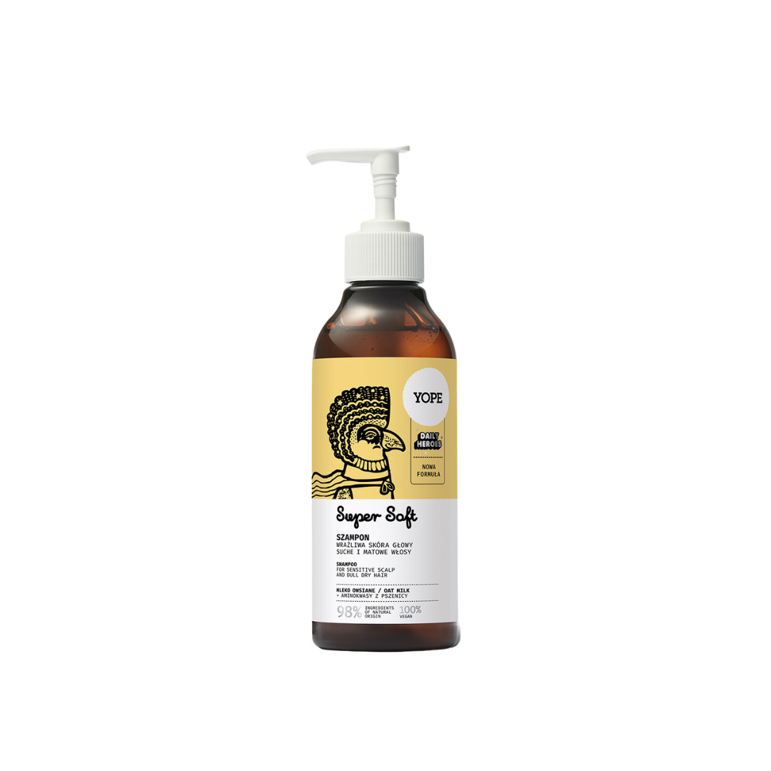 Szampon Super Soft z linii DAILY HEROES to nowa formuła bestsellerowego szamponu dla suchych, matowych włosów i wrażliwej skóry głowy. Codziennie supernawilża, dając w efekcie lśniące, elastyczne, zadbane włosy i ukojoną skórę głowy.