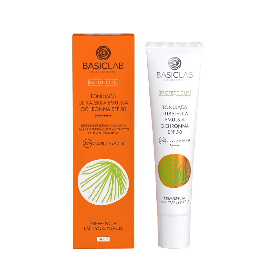 Tonująca ultralekka emulsja ochronna SPF 50 PPD 22,1została opracowana z myślą o skórze tłustej, trądzikowej i mieszanej. Kosmetyk zapewnia wysoką prewencję przed fotostarzeniem i skutecznie wyrównuje koloryt, zmniejszając widoczność zaczerwienień. Zawarty w formule etylowy kwas askorbinowy i BHA rozjaśniają przebarwienia pozapalne i regulują wydzielanie sebum. Szerokopasmową ochronę przed fotostarzeniem gwarantują filtry organiczne, które chronią przed negatywnym wpływem promieniowania UV, światła niebieskiego HEV i podczerwieni IR. Tonująca ultralekka emulsja ma płynną i niekomedogenną formułę, która pozostawia matowe wykończenie.